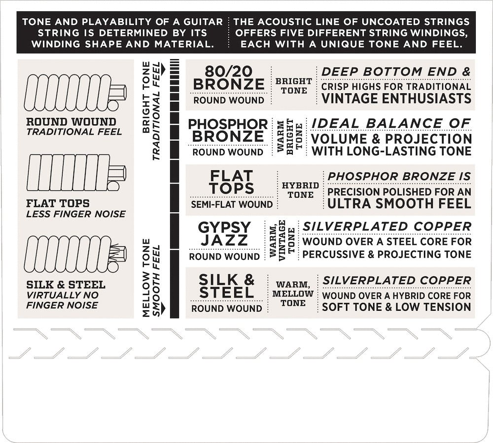 | Plus gauge plain steels for customized tension/feel Loopend construction for universal fit Nickelplated steel for bright tone, smooth feel and long life | Made in the U.S.A. for the highest quality and performance String Gauges: Plain Steel .0095, .011, .013, Nickel Wound .020, Plain Steel .0095 Environmentally friendly, corrosion resistant packaging for strings that are always fresh |